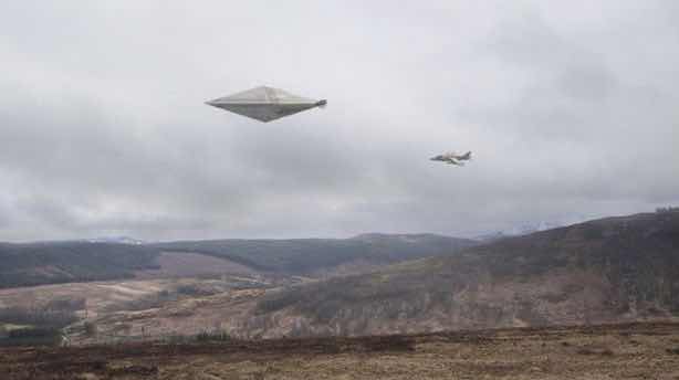 The previously lost pic - of a large angular object about 30 meters long hovering in the sky with a Harrier jet in the background - has been uncovered after 30 years and is described as “an important piece of the UFO puzzle” by experts. (Daily Mirror)